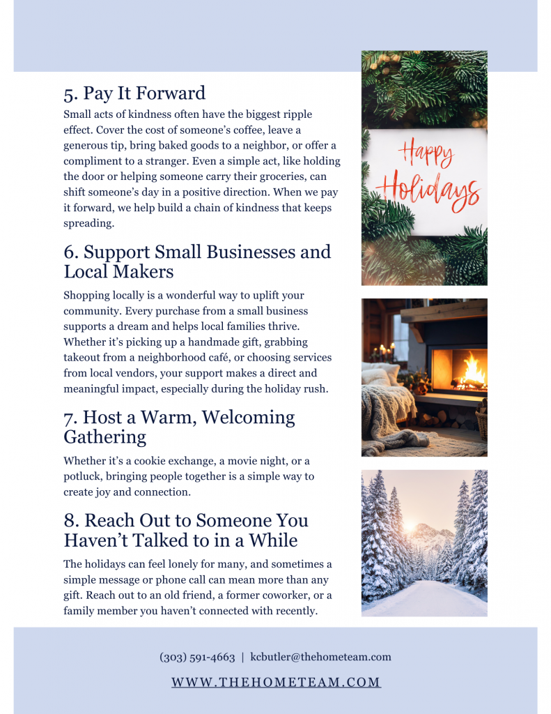 In this month’s newsletter, you’ll find: A heartfelt thank-you to everyone who joined us at the movies, your generous toy donations for Children’s Hospital truly made an impact. Our featured article shares meaningful ways to spread joy this holiday season (Read our featured article below!). Followed by the latest Denver Metro housing market update. You’ll also find a look at our active, pending, and recently sold listings. As always, we’re here if you need real estate expertise or personalized guidance!